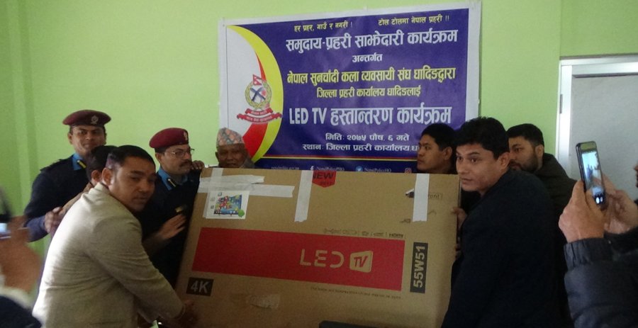 धादिङ सुनचाँदी व्यवसायीद्वारा प्रहरीलाई टिभि प्रदान