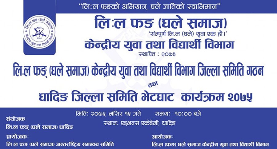 धादिङमा हुने घले युवा भेलाको तयारी अन्तिम चरणमा