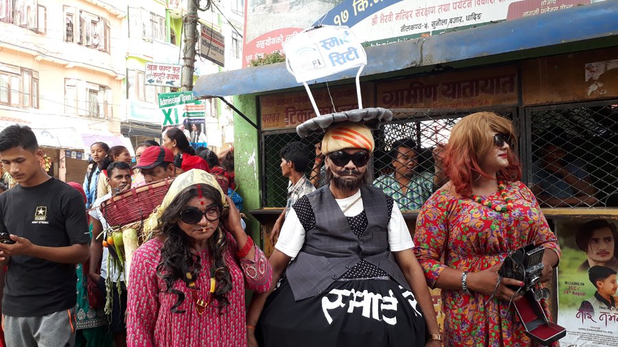 धादिङबेसीमा गाईजात्रा, स्मार्ट सिटीलाई कडा व्यंग्य