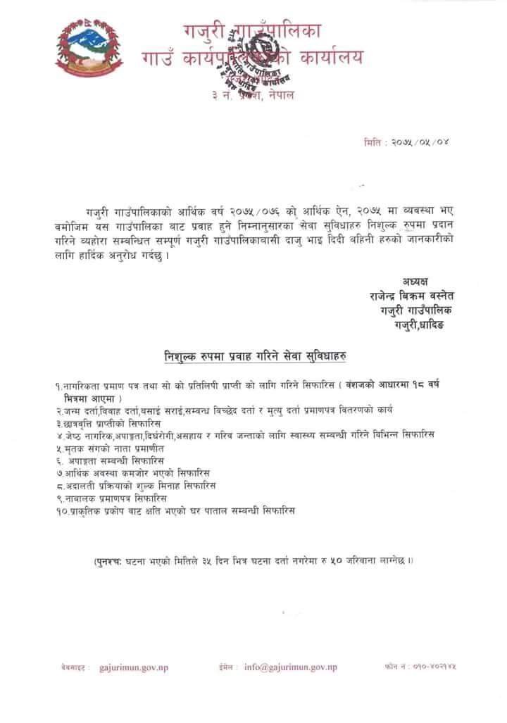 गजुरीमा अधिकांश दर्ता सिफारिसमा शुल्क नलाग्ने