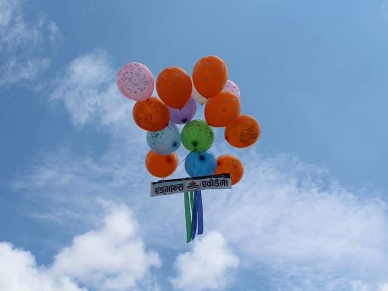 एड्भान्स लेखिएको बेलुन अाकाशमा