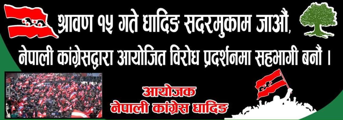 काङ्गेस धादिङले विराेध प्रदर्शन गर्ने