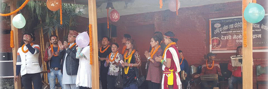 दोहोरी गीत प्रतिष्ठान धादिङले देउसी भैलो कार्यक्रम गर्दै