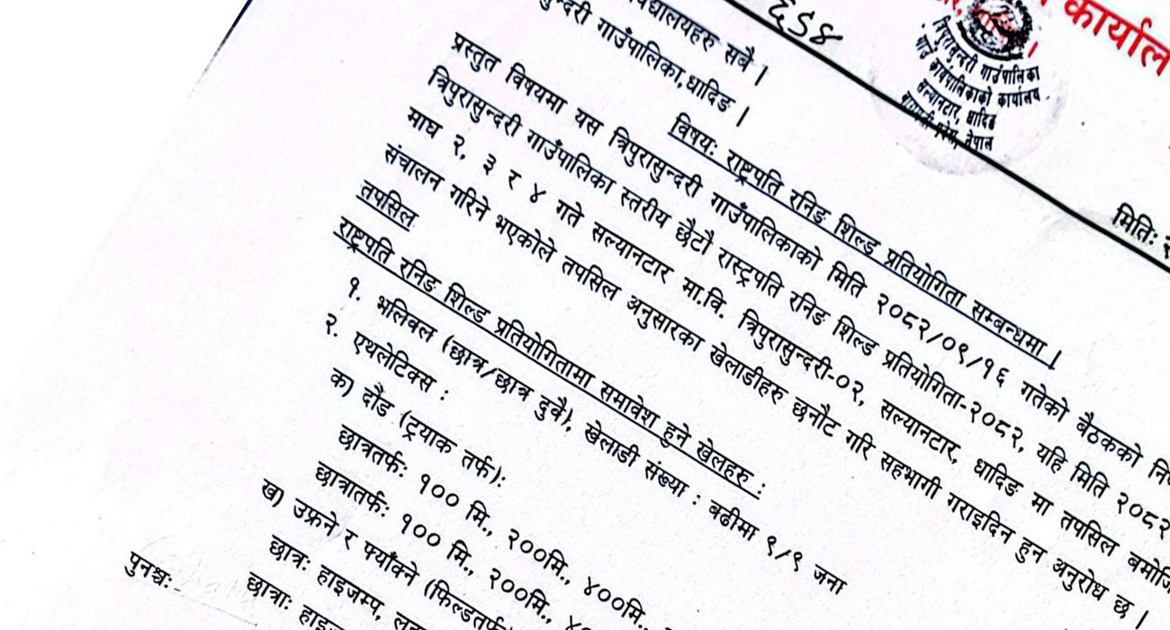 त्रिपुरासुन्दरीको छैटौँ राष्ट्रपति रनिङ शिल्ड प्रतियोगिता माघ २ देखि