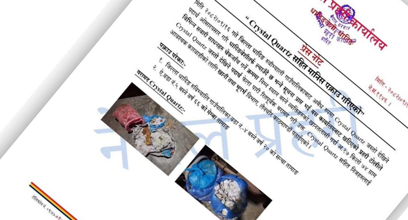 धादिङमा क्रिस्टल क्वार्ट्ज सहित दुई जना पक्राउ