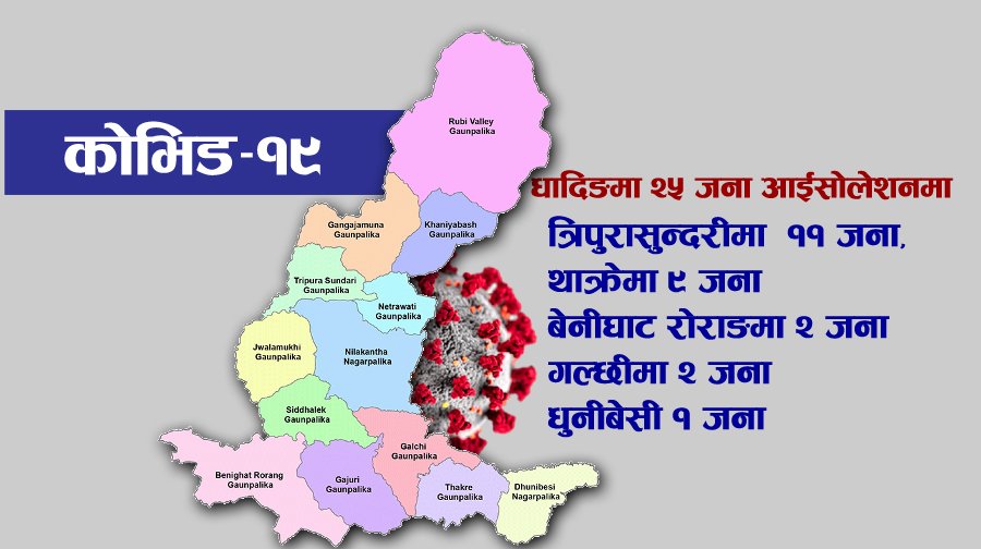 धादिङमा कोभिड-१९ संक्रमित २५ जना आईसोलेशनमा