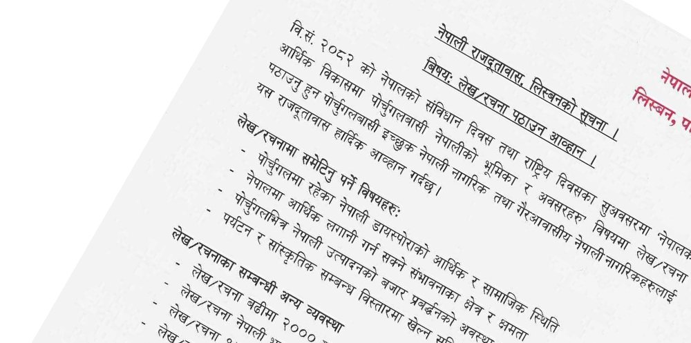 पोर्चुगलस्थित नेपाली राजदूतावासद्वारा लेख/रचना पठाउन आह्वान