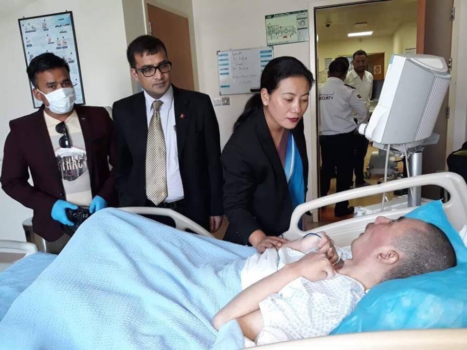 युएईको अस्पतालमा कोममा रहेका नेपालीलाई भेट्न पुगिन् खानेपानी मन्त्री