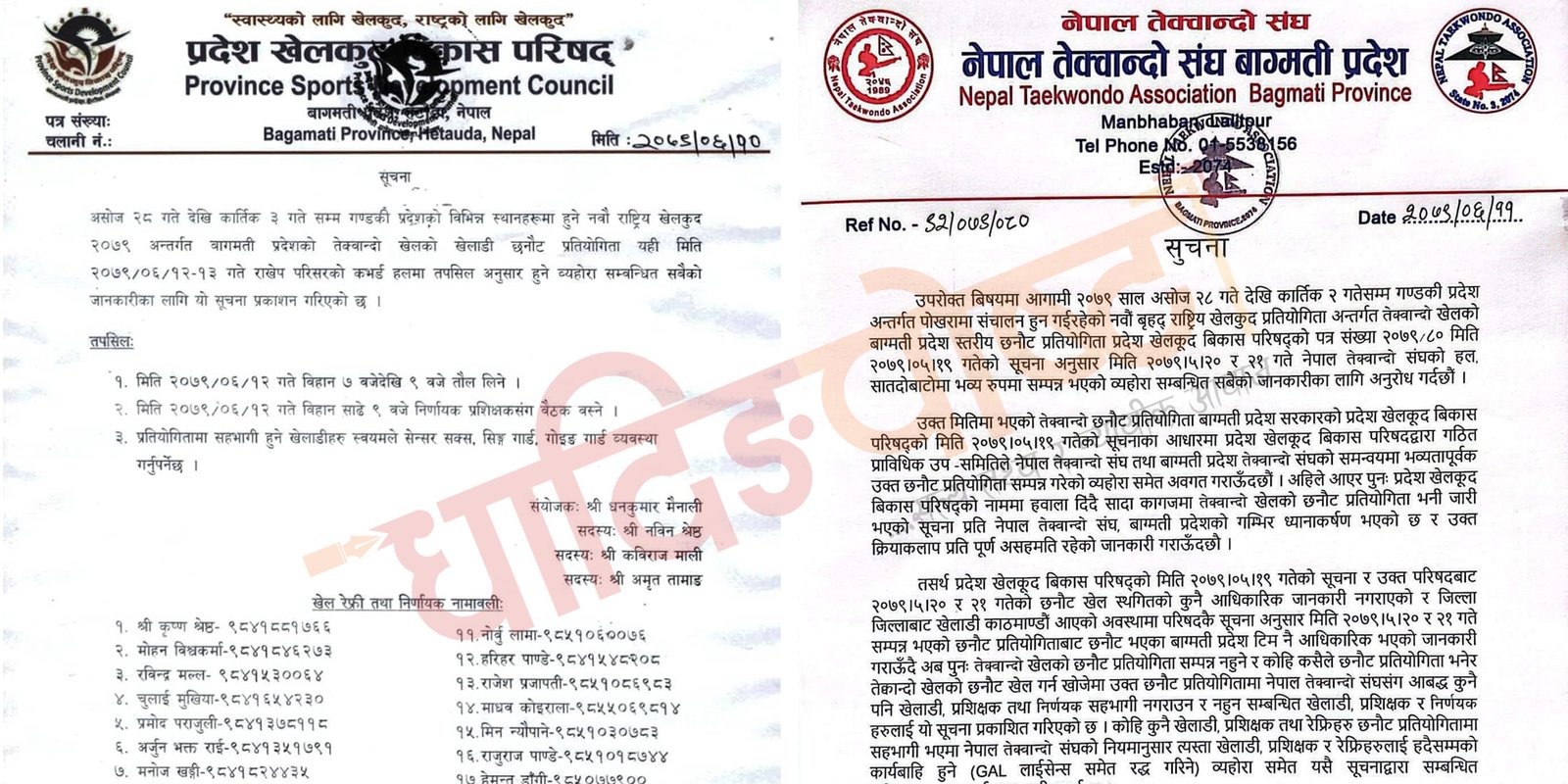 बागमती प्रदेशको तेक्वान्दोमा दुई संगठनको ‘वार’ खेलाडी र प्रशिक्षक मारमा