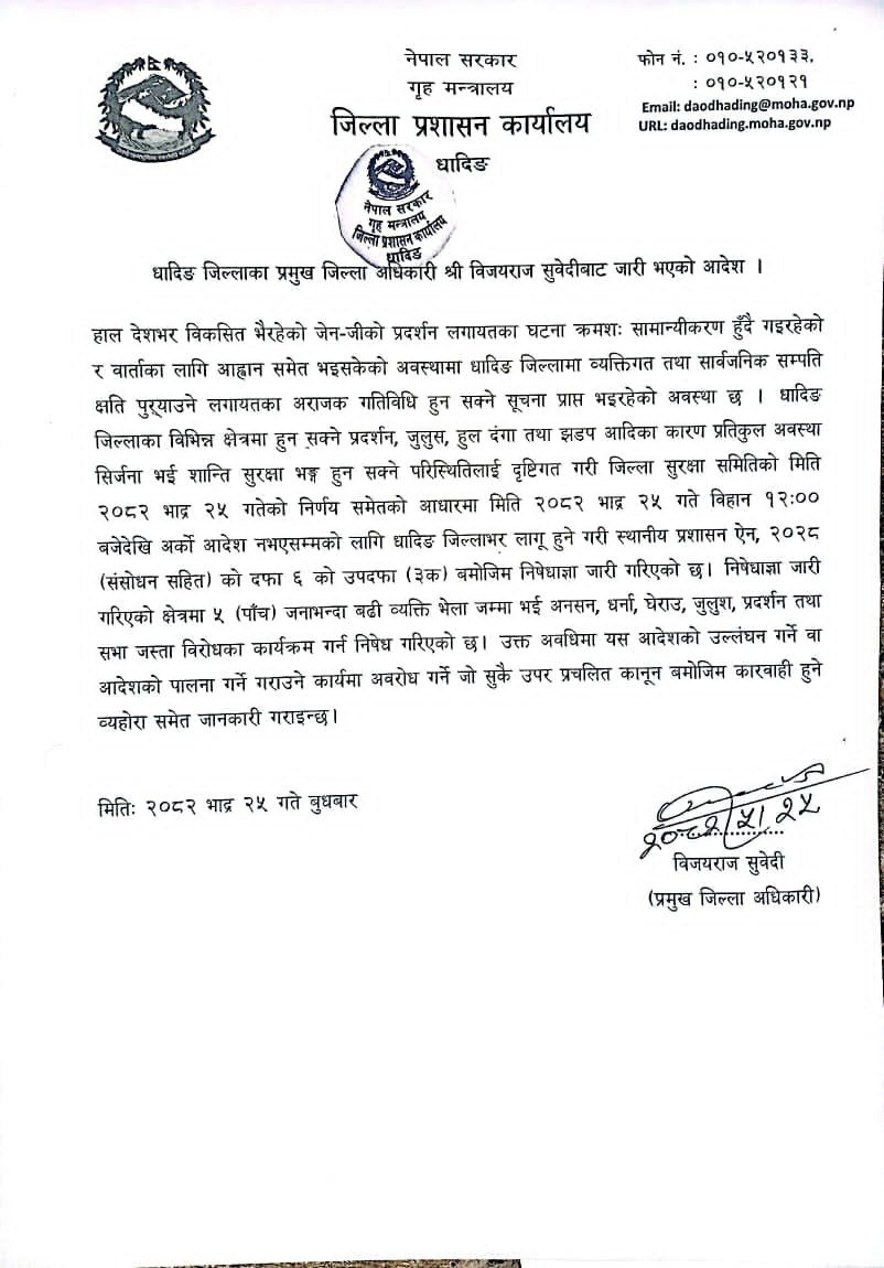 धादिङ कारागारभित्र आगजनी, निषेधाज्ञा जारी